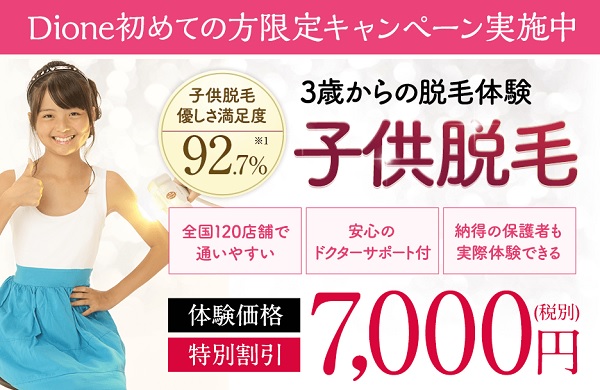 キッズ脱毛で有名なサロンは「Dione(ディオーネ)」という脱毛サロンです。